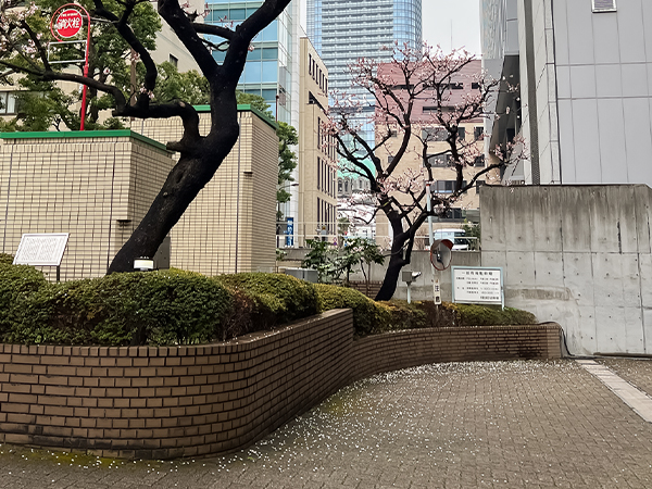 小雨の降る中、花びらが散っていました。
